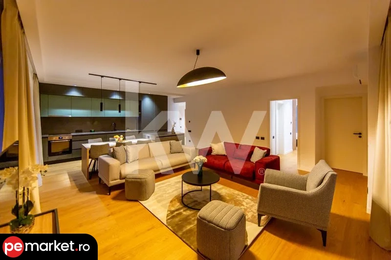Apartamentele sunt complet mobilate și utilate, cu finisaje de înaltă calitate, fiind pregătite pentru mutare imediată. Bucătăriile sunt echipate cu electrocasnice premium, incluzând plită, cuptor, hotă, frigider, mașină de spălat vase și mașină de spălat rufe cu uscător.